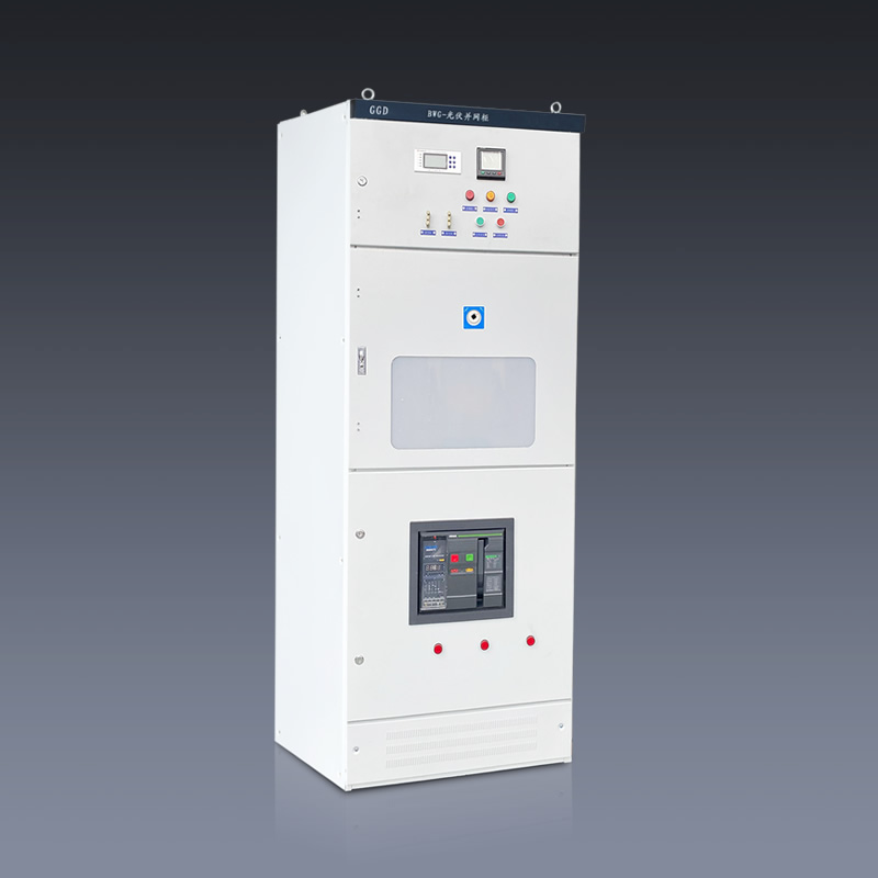 主要用于交流400V低壓系統(tǒng)的分布式光伏發(fā)電項目,低壓光伏并網柜主要有防孤島保護裝置(還可加裝故障解列裝置、電能質量在線監(jiān)測裝置)、隔離刀開關、并網斷路器、防雷器、溫濕度控制器、電能計量裝置和柜體等組成。柜型及柜體尺寸根據現場情況定做為MNS,GCS,GCK,GGD這幾種。